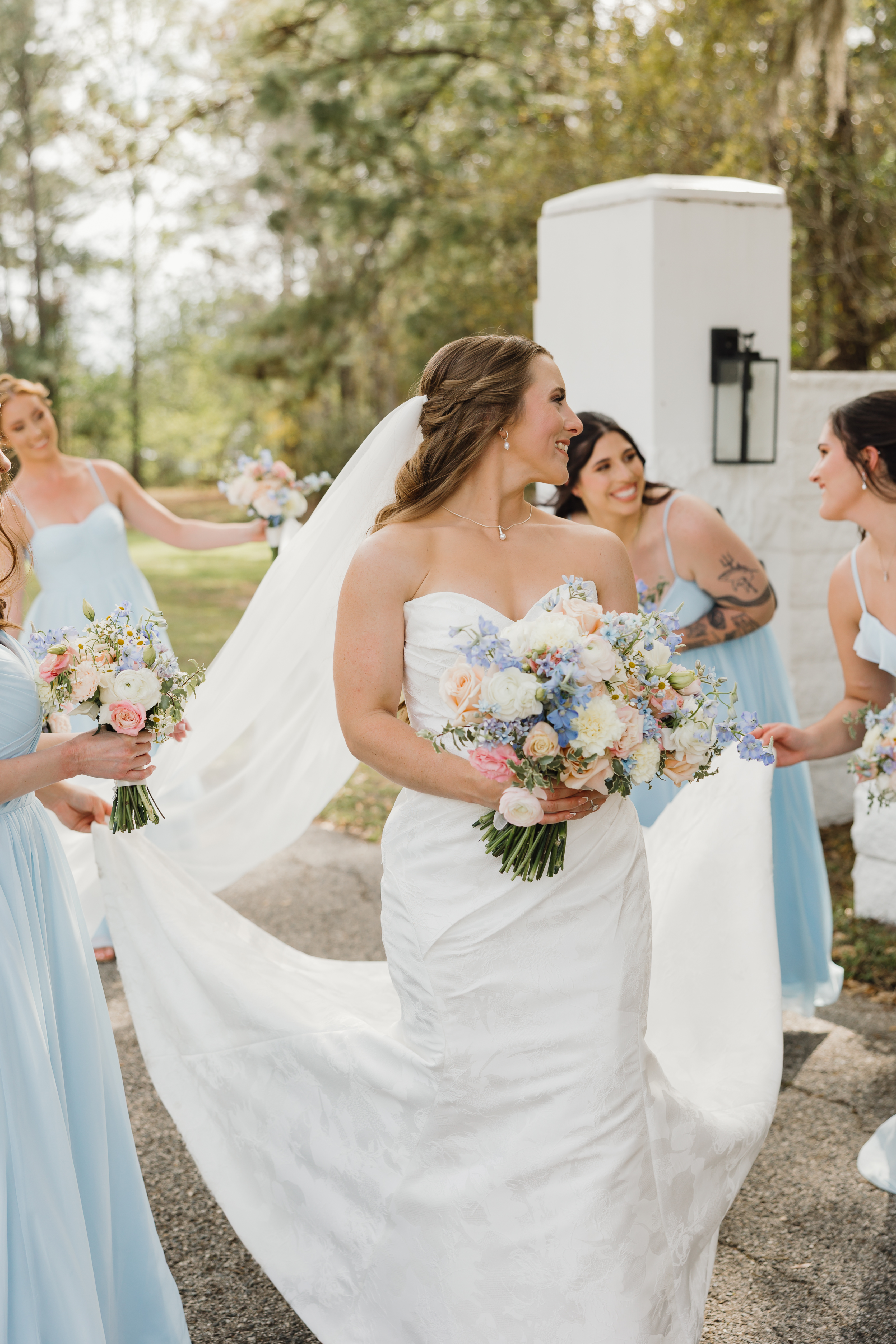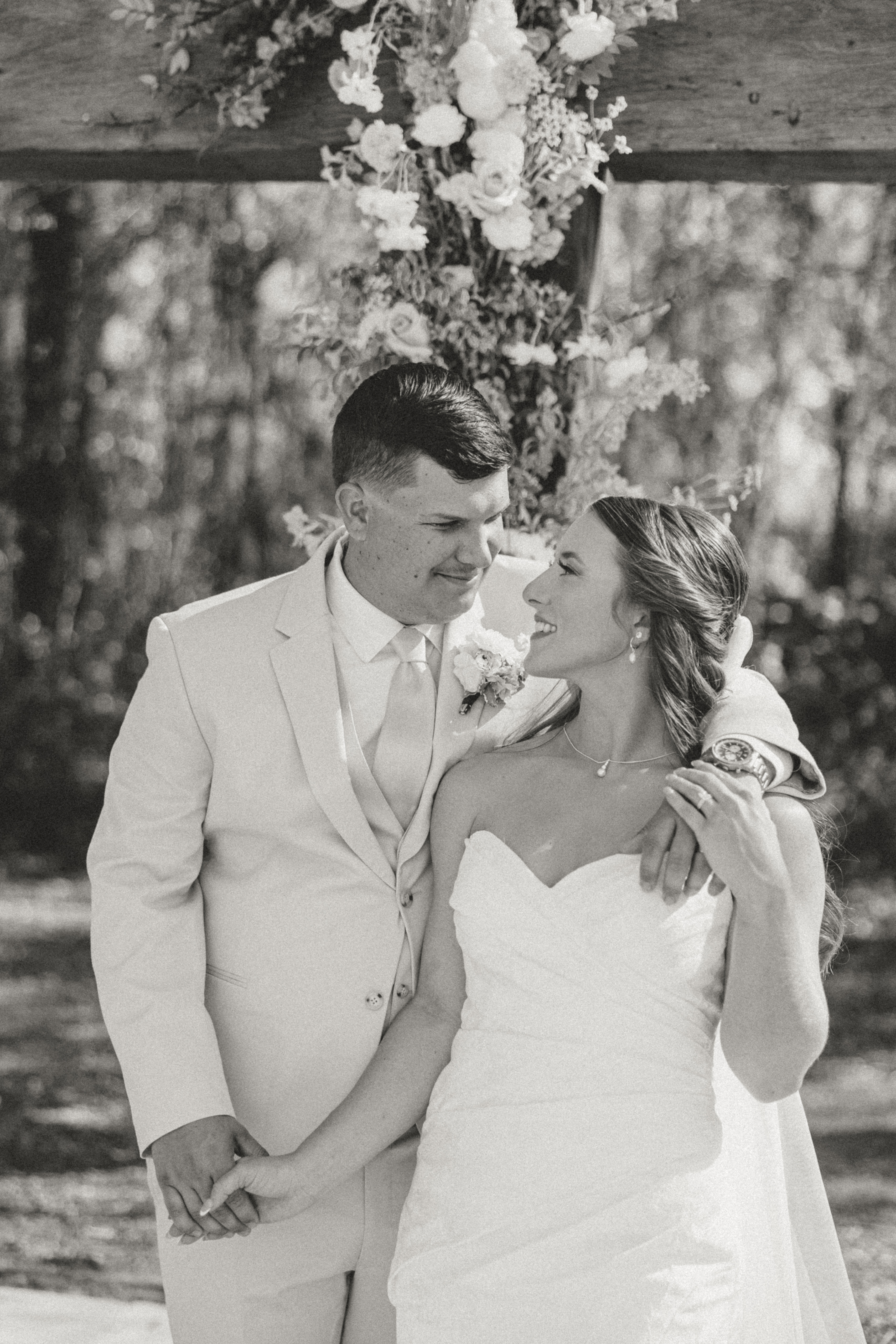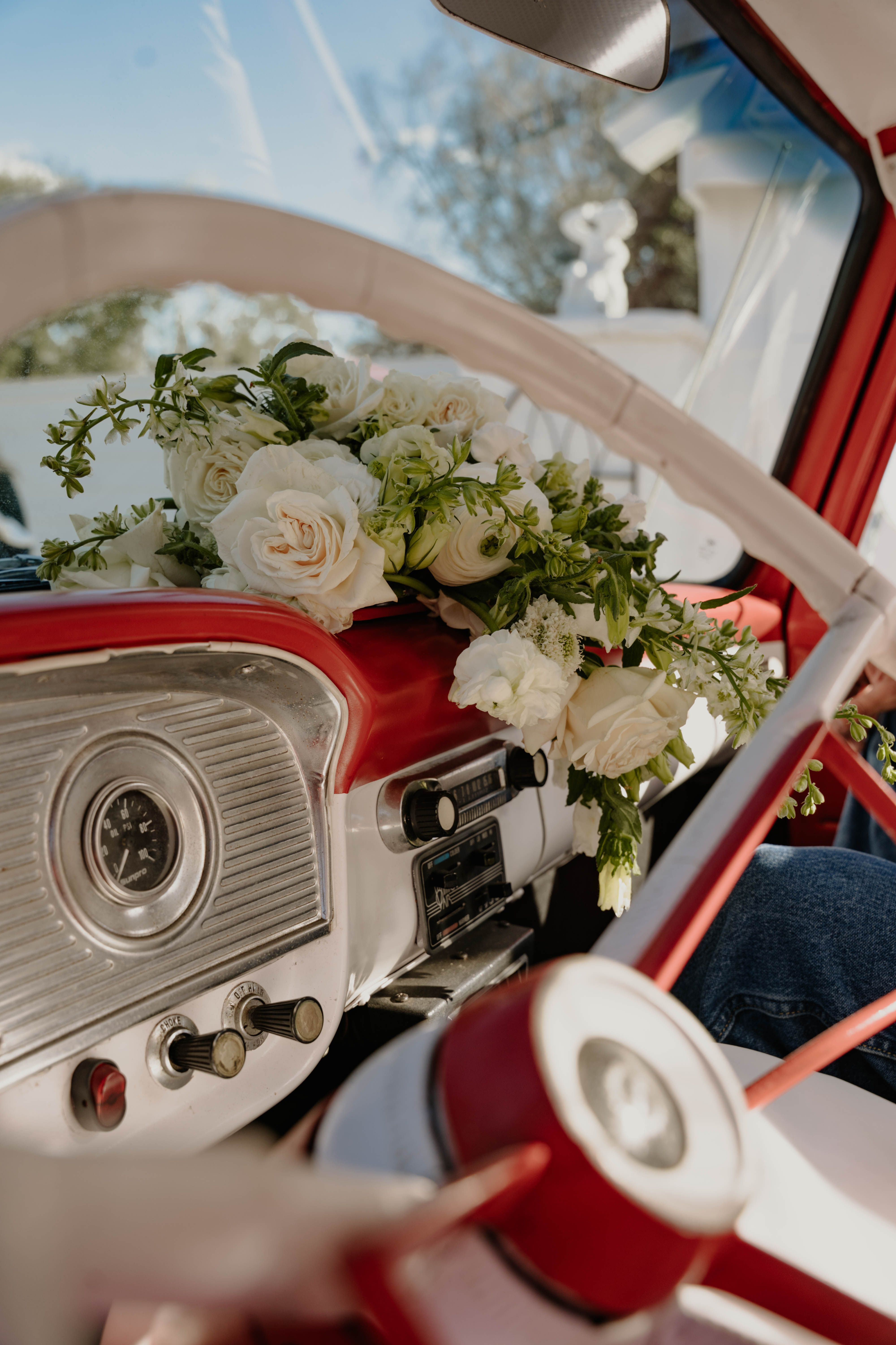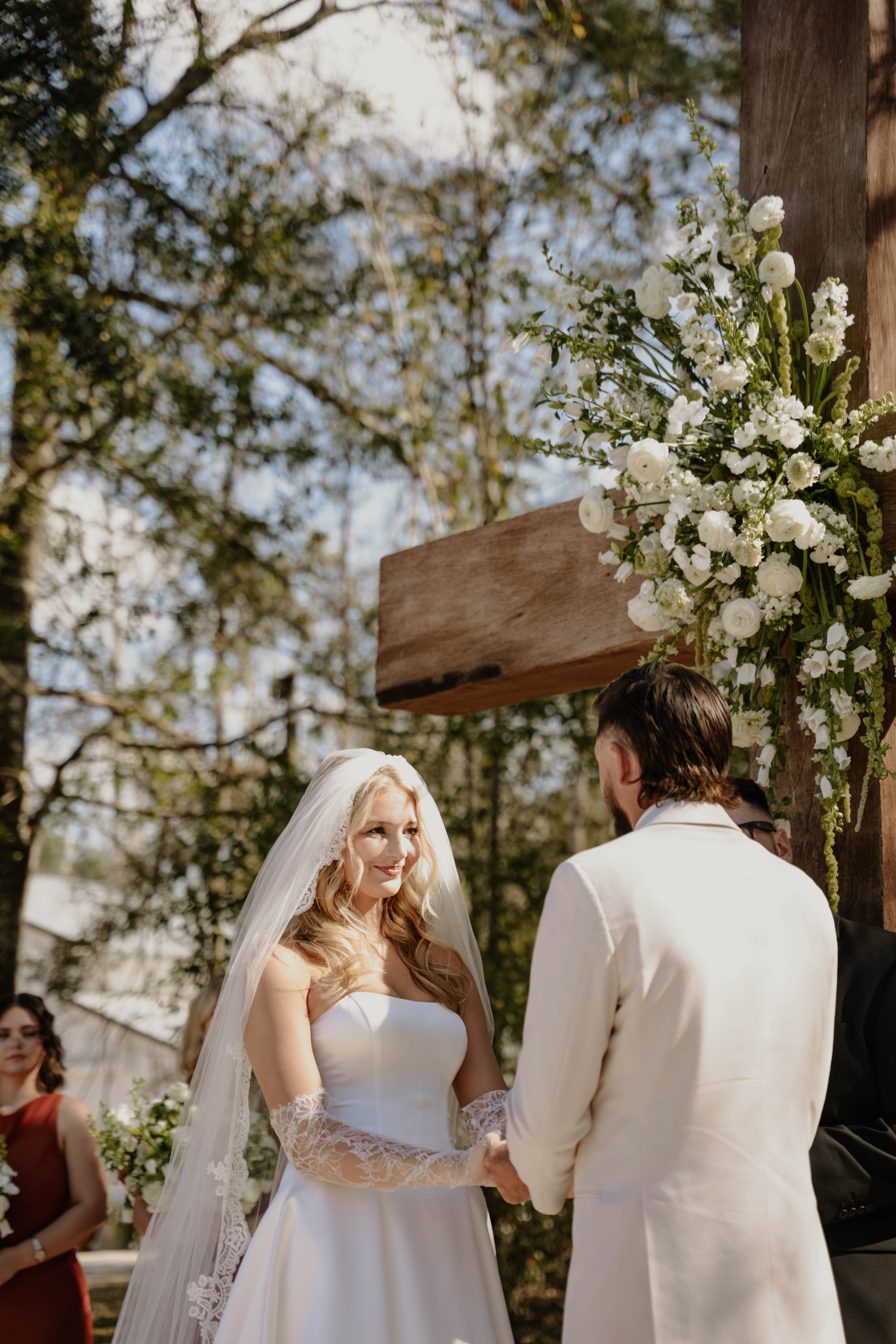 Amber & Nicholas’ wedding blended heirloom charm with soft spring color. A hand-built cross and 100-year-old church pews created a meaningful, historic setting, while a gold infinity circle and baby blue and peach florals added a modern, romantic touch. The bride arrived in a classic ’59 Thunderbird, setting the tone for a celebration that felt both timeless and fresh.